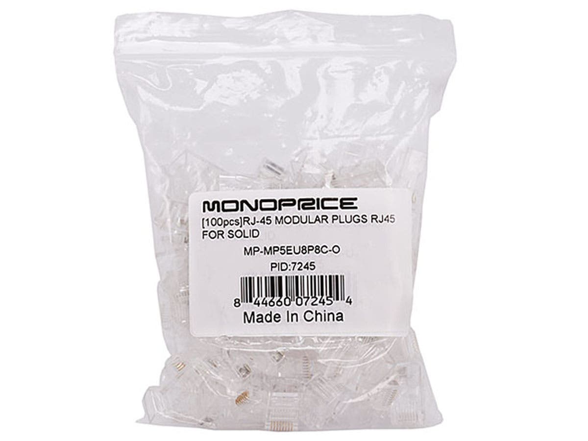 8P8C RJ45 MODULAR PLUGS FOR SOLID CAT5/CAT5E ETHERNET CABLE, 100 PCS/PACK